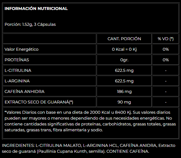 Caffeine Booster potencia el rendimiento, aliviando la fatiga y disminuyendo la percepción del esfuerzo. Incorpora diferentes fuentes de cafeína, principalmente la de mejor calidad: cafeína anhidra. Combina también arginina y citrulina que funcionan como vasodilatadores y mejoran la llegada de la cafeína, oxígeno y demás nutrientes a los músculos y al S.N.C. Aumenta la movilización de grasas del tejido adiposo generando un ahorro clave en la utilización de glucógeno.