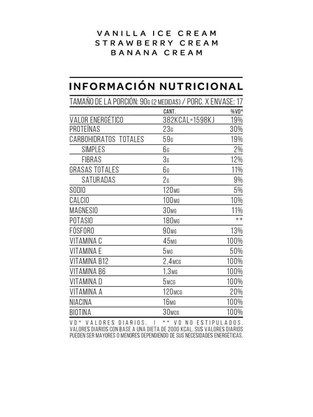 *Los sabores chocolate suizo y cookies and cream tienen cacao.